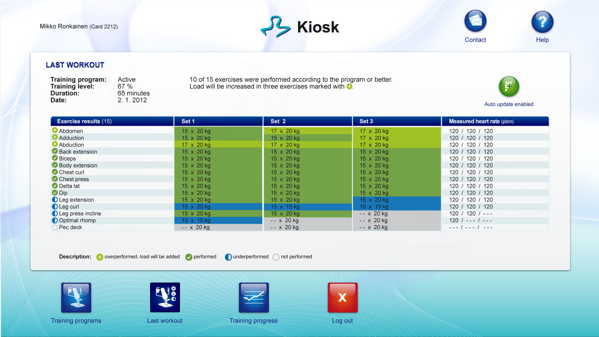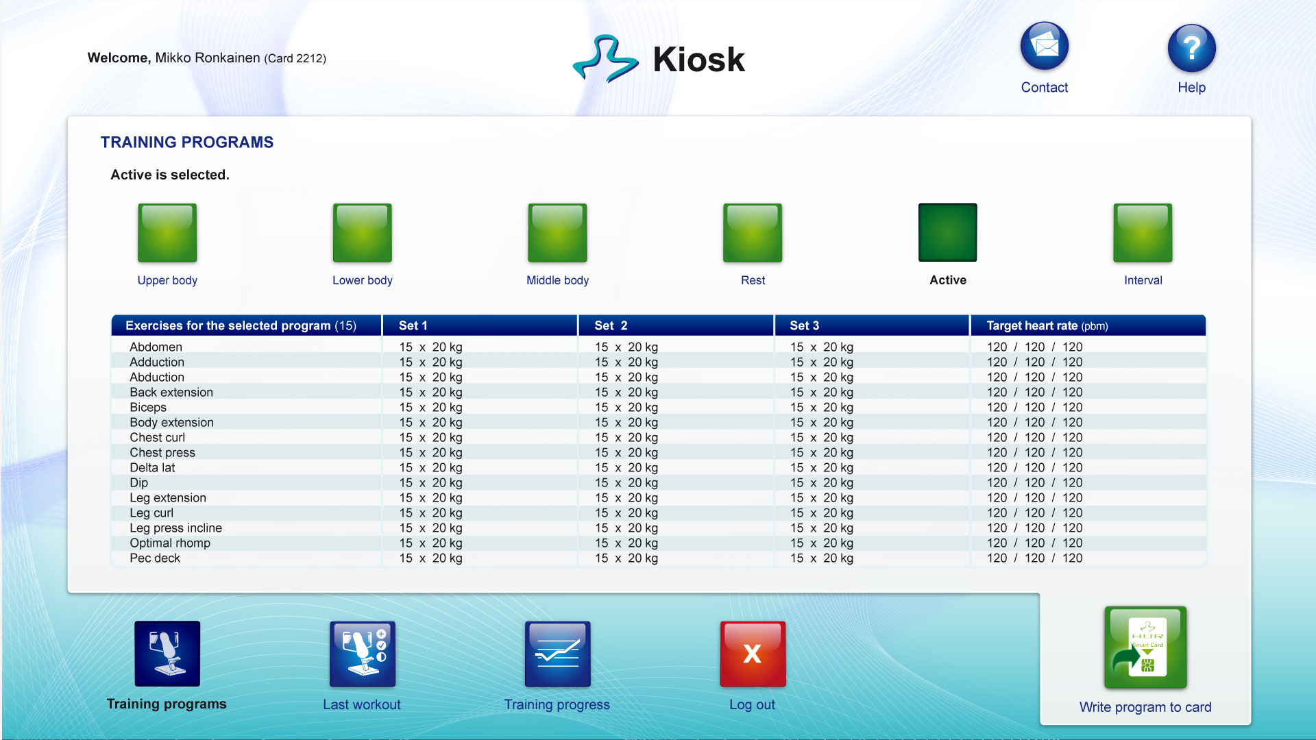 With the HUR SmartCard Software you can create training programs and load the programs to a Smart Card. After exercise the performed and stored exercises are moved to your computer´s database for further analysis. The HUR SmartCard Software stores performed workload, sets, reps, average heart rate, maximum heart rate, exercise time and time of visit.