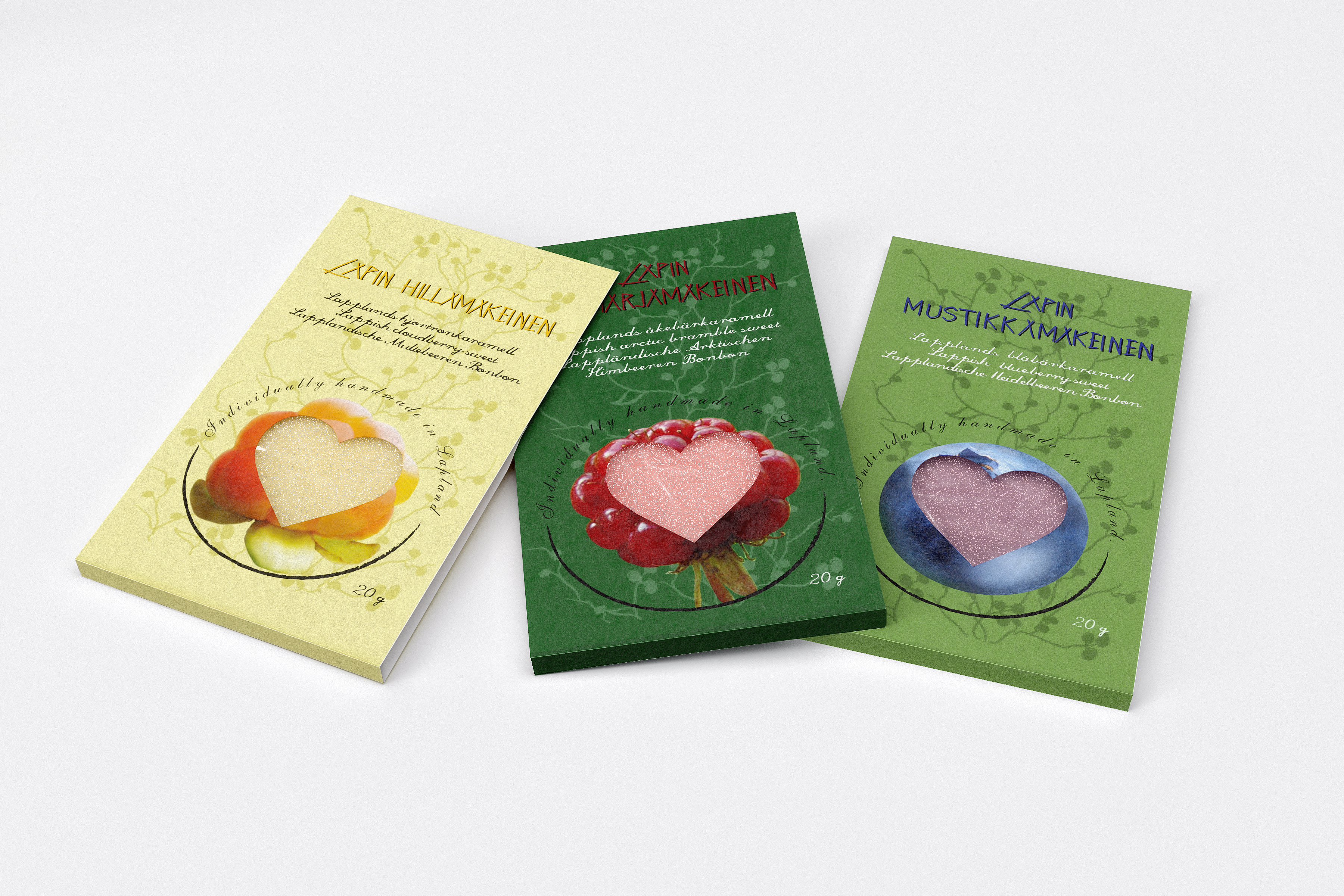 Lappish marmalade sweets Package graphics for lappish marmalade sweets. Marmalades have three flavors. Heart shaped marmalades are single-packed.